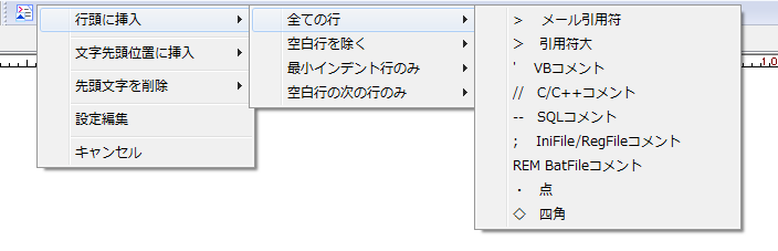 の行頭に引用記号やコメントアウト記号を挿入することができます。挿入する